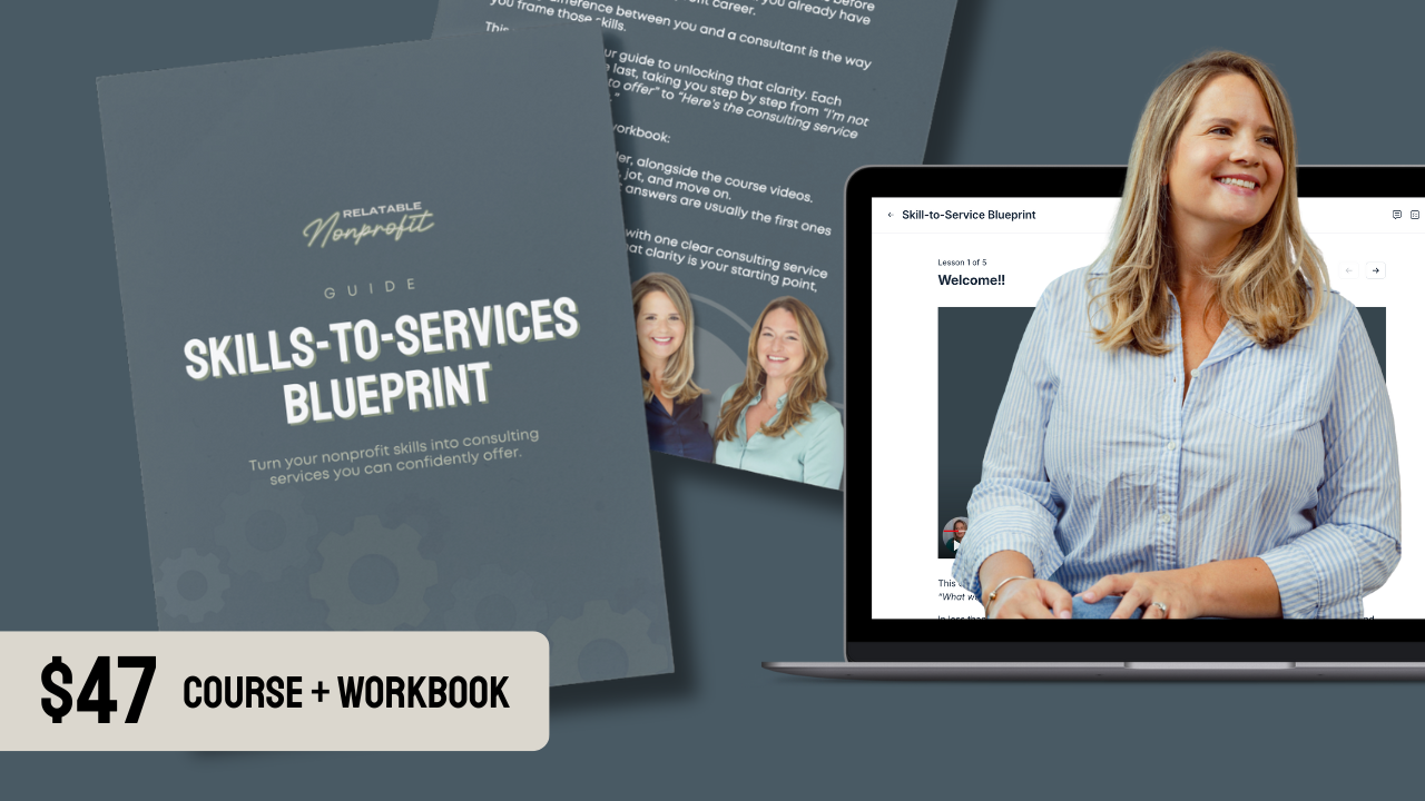 That’s why we created the Skills-to-Services Course—a training and workbook that helps you map your nonprofit experience into a consulting offer you can confidently start with.