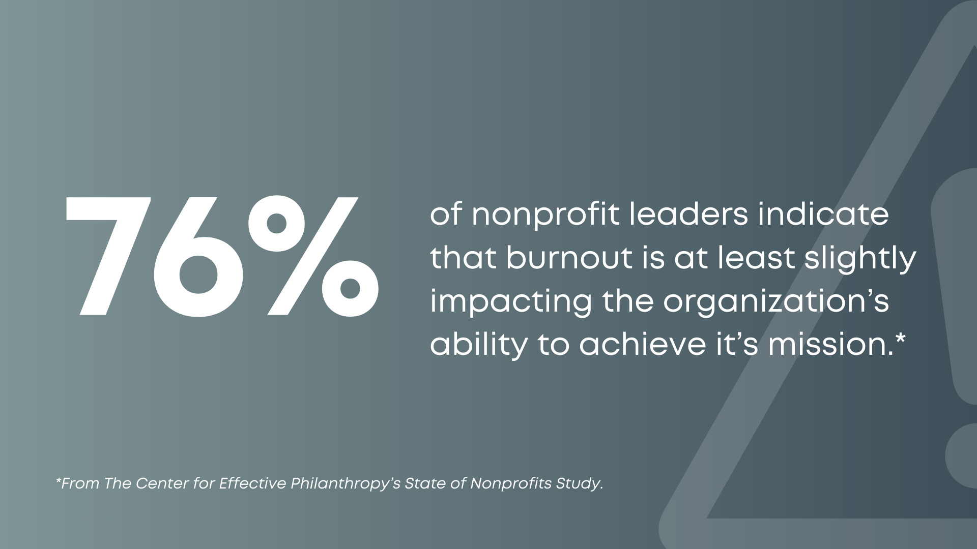The Center for Effective Philanthropy's 2024 study on the State of Nonprofits cites that of nonprofit leaders surveyed, 76% see burnout impacting the mission.